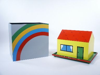 From Great Britain with credit to Edwin 1985. Showing a simple looking house in black and white 11 3/4" wide x 8 1/4" deep x 9" high to the peak of the roof all standing upon a platform that is slightly elevated the magician may patter about the need for a more attractive painting.