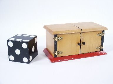 A mechanical Die Box like none other in operation and the brain child of Bob Madison. Features on this allow for some intriguing visuals. The woods used are of matched grain and this is indeed a very special box also having the trademark stamp of Loyd. Includes the hard to find instructions. Condition very good. | |