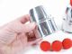 A set in aluminum never used and still with tissue between the cups. Includes the red drawstring bag and four balls one of which is the Chop ball. The cup height is 3 1/4 inches with mouth diameter of 2 9/16 inches shoulder height of 1 13/16 inches. These are the original Rings N Things Cups with the gleaming Magipoxy finish. These are about as close to new as you are going to get especially for Cups from the late 70's.
