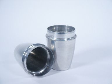 These metal shakers shown empty and placed together and a volume of liquid is produced. Placed together once more and another volume of liquid is produced! Overall condition very good. | |