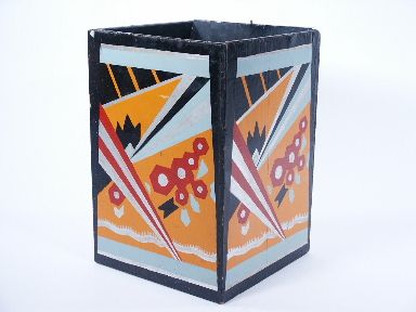 Having the exotic design finish that early Bartl items are so well known for this simple looking cabinet open on both ends is shown about having nothing more than an empty interior. When placed upon a table without drape the magician proceeds to bring forth what seems to be an endless selection of items (not included). Deceptive in design this Bartl piece is a fine representation. Condition very fine. | |