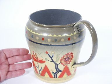 The beautiful hand painted Lota made of metal from Bartl that is a rather scarce item and this one in quite beautiful condition. Includes German instructions illustrated. | |