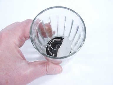 This beautifully made mechanism carries the trademark stamp of Triks in the Netherlands and with it you may make a silk suddenly appear within the glass! Condition very fine. | |