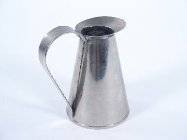A small metal pitcher standing only 4 1/4" high that will pour over and over again an amazing amount of liquid. A trademark stamped piece from Triks in Amsterdam. Condition very fine. | |