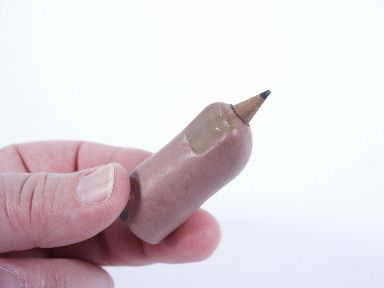 A metal thumb well made with a special housing for the tip of a pencil and includes illustrated German instructions. Condition minor paint absence very fine.