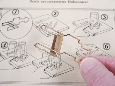 A very special gimmick enabling for 3 glasses to be placed mouth down upon a book and they will demonstrate that the magician has the ability to create anti gravity as when the book and glasses are inverted the glasses remain! Includes German instructions illustrated. Supply your own glasses. Condition very fine. | |