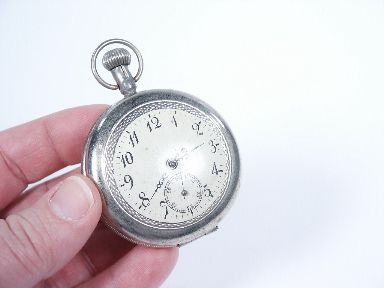 A silk is shown (not included) and rolled into the hand which is then opened to reveal not the silk but rather an old pocket watch! Includes German instructions illustrated. Condition fine. | |