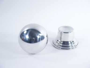 Includes the original gimmick not pictured and the seldom seen high profile stand matching in finish the beautiful silver floating ball that is 4" in diameter and the perfect size for ease of performance. Certain features of this first rate condition floating sphere were well thought out and if you ever thought of making a performance piece of this then this is the one to use. This was found in like new condition in the original box still wrapped in paper. Includes instructions and condition beautiful. | |