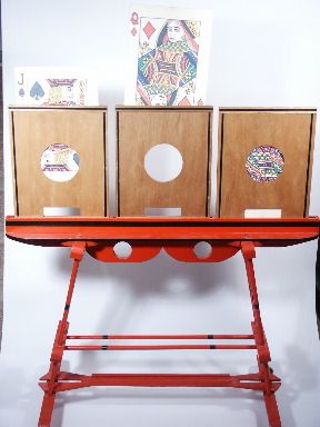 No routine included but follows the style of Find The Lady by Al Baker. This entire unit is one mans vision and construction to his performance style of this popular effect and an interesting one at that.