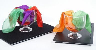 Later in a very magical routine the performer shows a tray with goblet with silks and states "You do remember what happened last time don't you?" and again in an instant the silks vanish and I mean they are gone!