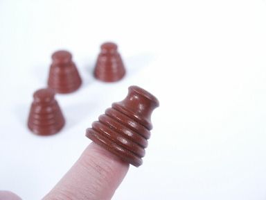 A set of four turned wood thimbles. Includes German instructions illustrated. Condition very fine.