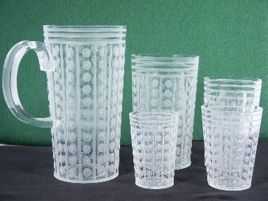 If you have spent any time in magic at all - and we all know it - along comes an effect and it puzzles the mind and you fall in love with the method by which it is accomplished. This I admit is one such effect with me. Sitting upon a tabletop or tray (not included) is a pitcher along with five tumblers graduated in size. The first smallest glass filled with milk is poured over into the next size larger glass and low and behold it is filled to capacity! This tumbler is in turn poured into the next larger tumbler and like before it is now filled to capacity. This is done again with the largest tumbler and now the audience is getting crazy. As if this wasn't bad enough now the largest tumbler is turned over and poured into the empty pitcher and it does fill it to capacity. Alright now we feel we have seen an incomprehensible effect. Stop right there it has another step which makes it a finale as the pitcher is used to now fill the four empty tumblers to capacity! Now we are all crazy. This is of crafted lucite and all the etch designs are custom done meaning this effect was built from the ground up with a lot of time involved. This was made in Belgium and includes instructions in English. Condition like new. | |