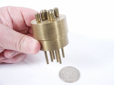 For many years all that was available was a plastic version and granted that was still an excellent effect for fooling a spectator. Many years later someone had the idea that some of the early plastic magic effects could be made in brass making it more appealing for magicians to work with and dressing up a pocket effect for the spectators. Now it looks more like a miniature illusion. Includes instructions. Coin not supplied. Condition very fine. | |