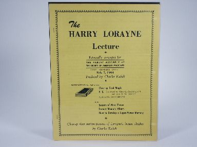 Lecture Notes: The Harry Lorayne Lecture 1964-Charles Kalish Includes impromptu Out Of This World. | |