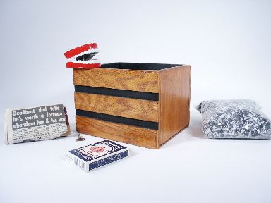 A handsome polished wood box specially designed to make you the performer a very entertaining and funny person.