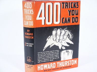 The combined edition of 200 Tricks You Can Do and 200 More Tricks You Can Do. Published in 1926 and 1927 this by Blue Ribbon Books. Combined over 380 pages with illustrations having a wide variety of effects that as the title implies you can do. Also Includes a brief biography of Howard Thurston written by Walter Gibson just beyond the preface of the book. Previous owner's stamp on endpapers and lightly on cover. Condition very fine. | |