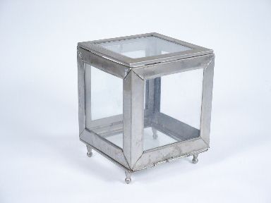 Standing 5" high made of metal and glass the moving panel spring loads from bottom to back side. Shows age with some solder reinforcing. Condition good. | |