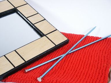 A beautifully finished unit measuring 14" x 10" along with a custom hand knit bag into which it just fits and two long knitting needles for what appears to the audience to be an impossible penetration. The framed mirror is slipped into the bag and zippered closed. Taking one of the knitting needles the magician taps the mirror through the bag where it is heard by the audience. Suddenly the magician stops and the needle penetrates the bag coming out the other side! As if melting through the mirror the needle is removed and another place found and the same happens once more. After several more times the needle is laid aside and the magician takes hold of the mirror by the long edges and slowly makes a bending motion to the point of almost in half! The mirror is restored to its original position the bag is unzipped and the framed mirror is removed unharmed! Includes instructions. Few of these were made many years ago and this is a quality piece made out of solid polished wood with black trim accent. Condition very fine. | |
