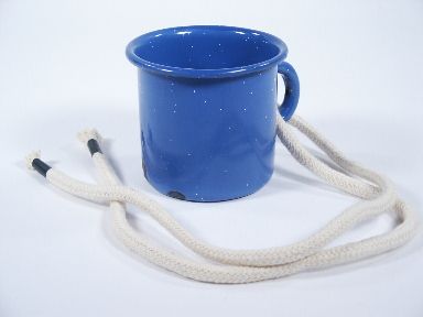 A cup threaded on a rope penetrates the rope dropping to the floor! There are a couple of places on the bottom of the cup where the paint is worn away certainly from the part of the routine where it drops to the floor. Includes illustrated instructions. Condition good. | |