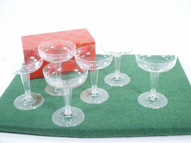 A perfect and deceptive production of six champagne glasses (plastic) of different colored liquids either from a square circle or Buddha tube that you already own. This is really quite a clever production and includes all glasses with instructions. Condition very fine. | |