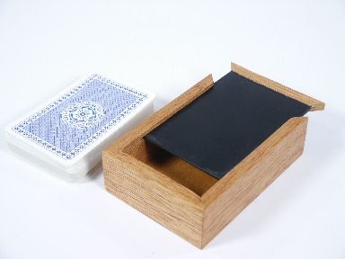 From Krazy Rabbit Professional Magic. This handsome little box made of mahogany wood also including a deck of Piatnik Cards from Austria will enable many different effects as shown by the 12 pages of illustrated instructions. Includes 2 ply cards along with the KR wedge. The box will allow for secret addition of cards to a pack of cards and with the special lid design a card may be stolen away from the deck while in the box. Very well made. Condition very fine. | |
