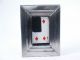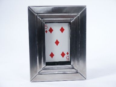 A selected card torn into quarters with the 4 pieces being thrown at the empty frame one at a time and they magically appear inside beneath the glass! The completely restored card may then be removed from the frame and tossed into the audience for examination. A new and better door catch at the rear has been installed frame is made of stainless steel crafted by Merv Taylor and works well. Includes instructions. A difficult to find item. Condition very good. | |