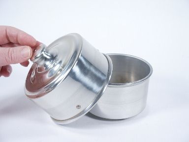 Many times you will find use for an item like this for the production of a cupcake or wrapped candy and this one of polished aluminum also having the feature of being able to come back and do a second production load. Includes instructions and only appears to have had a little flash paper set fire in the main pan otherwise close to new condition. | |