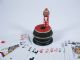 From Great Britain comes this charming close up wonder that is sure to please as it creates a sense of animation upon the table among the spectators. After a card is selected and returned to the deck with a shuffle the magician will cause the selected card to come to the top of the deck. Saying so he gives the deck a shake and turns over the top card but it is found not to be the selected one. Certainly in trouble the magician takes the top card and places it face down upon a pedestal saying he will need the help of a little friend he carries with him just in case this should happen. He brings from his pocket a small head figure but one with no body. His little friend can indeed help him and he drops the head onto the face down card upon the pedestal and mind you this is done from a few inches above. Suddenly the card and head are seen to both jump up from the pedestal with people all around wondering what has just transpired. The magician states his little friend has yet to fail when called upon and the magician reaches for the pedestal lifting it up and asking at the same time that the selected card be named and as it is the spectators now see the head and body with the card sandwiched between and it is indeed the correct selected one! You will derive a great deal of enjoyment from this piece and other ideas for use are given in the instructions which accompany it. Also includes a deck Poker size deck of cards. Condition very fine. | |