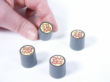 The instructions state Anverdi Presents and these are beautifully made for the routine of these little cones moving about from underneath one hand to join others under another upon the table top or down on the floor as some performers prefer. The special feature of this set is the automatic locking feature. The instructions are illustrated and all in very fine condition. A hard to find item. | |
