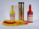 The effect begins with 2 black bottles and a tube which is shown empty and placed over one of the black bottles. Reaching into the tube a red silk is produced from the center and the tube is lifted and now instead of a black bottle it is a red bottle! The tube is placed over the other black bottle and the red bottle is taken and a red drink is poured from within. The tube is shown empty once more and placed back over the black bottle and a yellow silk is now produced from within the center of the tube. The tube is lifted and now instead of the black bottle it is seen to have changed into a yellow bottle! The bottle is taken and a yellow drink poured from within. The tube is placed over the yellow bottle and the yellow silk is caused to vanish and the tube is lifted away and the yellow bottle has changed back to black. The tube is placed over the red bottle and the red silk is caused to vanish and now the tube is lifted away and the bottle is seen to have changed back to black! The tube is shown empty and all to the puzzlement and amazement of the audience. As an alternate to the routine the silks could be changed into black instead of vanishing. Includes the beautiful bottles and red and yellow silks. Includes instructions. Condition beautiful. | |