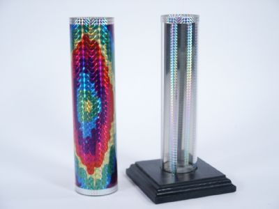 Standing 8 3/4" high the tube is 2" in diameter and will exchange vanish or produce silks. A different principle than Crystal Silk Cylinder. No silks supplied. Includes instructions. Condition very fine. | |