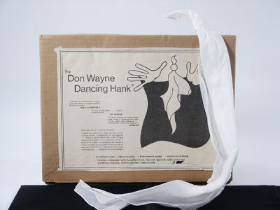 Holding a foulard outstretched between the hands the magician causes an 18" silk to appear dancing behind the cloth! It jumps toward the audience continuing to dance in front of the cloth and scampers from hand to hand running up the arm peeking over the shoulder and more! The handkerchief vanishes floats and reappears always under the control of the magician. From 1978 and in very fine like new condition. Includes 8 pages of instructions with illustrations. | |