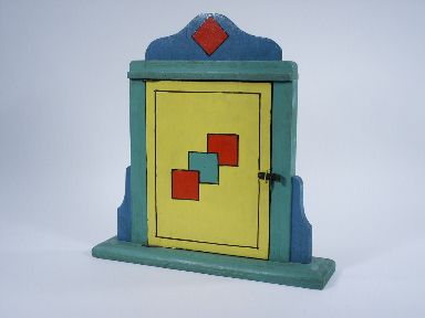 Stands 13 1/4" high with base 13" wide x 3" deep opening one door shows a red cat and with some distraction in patter the unit is turned around showing that when the door is opened again it turns white! Some performers would have the audience yell "Boo!" to effect the turning white of the cat.