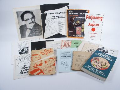 *JB Bobo Modern Coin Magic 358 pages. *Book Of Card Tricks Principles Of Sleight Of Hand by Drake Publication 156 pages. *Ron London Magic Lecture Autographed 18 pages. *Do That Again by Parrish and Weigle 76 pages. *50 Crazy Card Stunts Abbott's Magic. *Performing In Japan Amusing Anecdotes and Helpful Hints by Brad Zupp 80 pages. *Fifty TV Magic Tricks Marshall Brodien 22 pages. *The Squeak Book Chuck Leach 101 entries on use with squeaker. *Deck In Hand Magic Of The Magyar by Laszlo Rothbart 48 pages. *Ron London Trick Treasury 24 Routines You'll Use. *100 Houdini Tricks You Can Do by Dunninger 144 pages. *Dye Box Book by Many Famous Contributors over 50 tricks Tommy Windsor 48 pages. *Sleights Being A Number Of Incidental Effects Tricks Sleights Moves and Passes for Purposes ranging from Impromptu to Platform Performances by Burling Hull 28 pages. *3 Views Of Hank Moorehouse 8 pages. *Tom Craven's Pallbearers Review Lecture Autographed. *Clever Card Tricks That Anyone Can Do by Maxwell 10 pages. *Now You Can Get The Best Of Senator Crandall compiled by Neil Foster 108 pages.