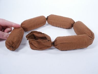 The Great past Masters of Magic: Thurston Blackstone and others made use of this wonderful effect of producing a string of sausages from the coat of a spectator brought onstage to assist with a trick. Well made cloth covered and with the important self-contained retaining device which makes loading easy. Hard to find and in very fine condition. | |
