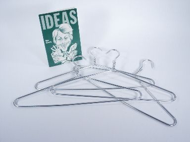 Set of 4 coat hangers for a comedy effect of linking and unlinking and Mike Caveney's Book entitled "Ideas" published in 1983. There are no instructions for the coat hangers. Condition very good. | |