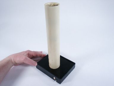 A Rare original Anverdi item being one of only 3 made. Candle stands 12" high in its base and the candle itself has a 2" diameter. This candle will magically light at the will of the magician. Ingenious construction throughout as the magician may be some distance away for the performance. An absolute find for the Anverdi Collector or for a Magician to put to good use. Works perfectly and in First Rate Condition. | |