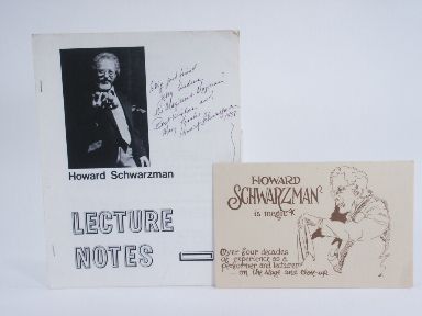21 pages with illustrations and inscribed To My Good Friend Jerry Andrus The Magician's Magician 1978 along with Howard's Promo Brochure. The late Jerry Andrus was known as a magician's magician. A rare individual possessed of many talents creating magical effects and optical illusions enjoyed around the world. This auction listing is from the personal effects of Mr. Andrus. | |