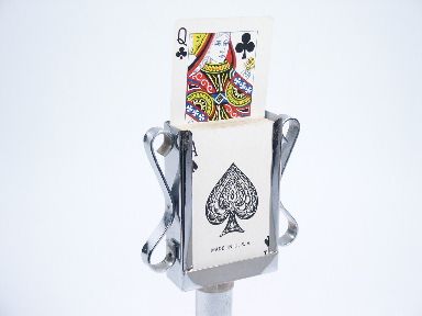 Circa 1950's by Abbott's. Standing 9 1/4" high this metal skeleton frame houlette will cause cards to rise one after another and at the completion of the effect the houlette and stand may be examined. The motive power for the rising of the cards is made so that it can be removed so that examination may take place.