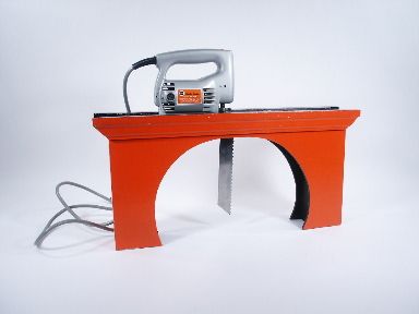 For a portable illusion that you can have quite a bit of fun with this one is hard to beat. A frame is placed over the mid-section of a volunteer and a power jig saw is shown and actually turned on to show it is indeed a real jig saw. At this point it is also very effective to take a French bread baguette and cut through it as a further demonstration.