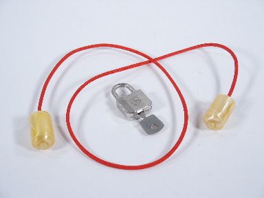 One of the better and more baffling Tenyo items that will leave a spectator completely in the dark. A cord with solid stoppers at the ends and a regular lock is examined and keep in mind that the lock is ungimmicked and the stoppers cannot be removed from the cord. The spectator fastens the lock on the cord and the lock cannot pass over the stoppers. Without covering the lock and in full view it melts off the cord and the spectators may examine everything! Includes illustrated instructions. Condition very fine and one you will do. | |