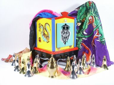 The items the previous owner had to go along with are *9" x 69" Silk Streamer *31" Black Silk Cover *36" Art Dragon Silk *27" Blue Silk *27" Pink Silk *31" Pattern Acetate Scarf *16 Silver and Gold Bells made of plastic and 6" Solid Brass Vase containing Glitter. The previous owner also made a custom heavy cardboard box to house everything. Includes 2 pages of instructions. Condition very fine.