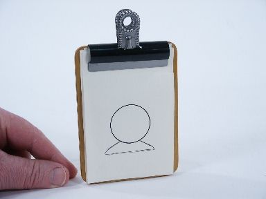 A thin and very well made of wood clip board that will enable the performer to obtain information written by a spectator upon a sheet of paper. Once the spectator has written or drawn an image the paper is retained by the spectator out of sight of the performer.