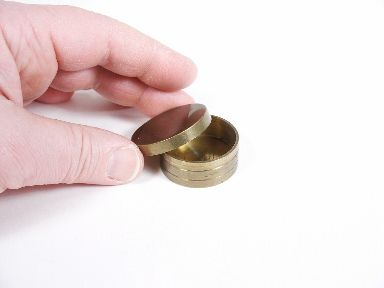 You will find this to be the design of the Original Okito Box and this one in Brass with an inside depth just under 11 mm. For use with Half Dollars or English Pennies (Coins not supplied).