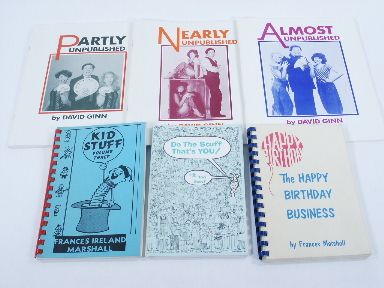 *Frances Marshall, The Happy Birthday Business, 1978 *Chris Carey, Do The Stuff That's You, 1991 *Frances Ireland Marshall, Kid Stuff Volume Three, 1962 *David Ginn, Almost Unpublished, 1987 *David Ginn, Nearly Unpublished, 1989 *David Ginn, Partly Unpublished, 1993. Condition varies, but usually good. | |