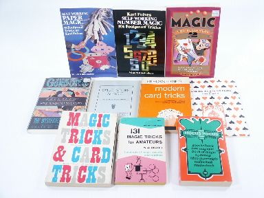 *Uitgave Hausemann and Hotte NV, Jumbo Hocus Pocus Show, 1972 *Will Dexter, 131 Magic Tricks for Amateurs, 1958 *Henry Gordon, Henry Gordon's World of Magic, 1989 *Harry Baron, Magic for Beginners 2, 1995 *Karl Fulves, Self-Working Number Magic, 1983 *Karl Fulves, Self-Working Paper Magic, 1985 *Wilfrid Jonson, Magic Tricks & Card Tricks, 1954 *Harry Blackstone, Blackstone's Modern Card Tricks, 1976 *Eli B. Johnson, Drug Store Magic *Ronald Haines, 36 Tricks With Fa-Ko Cards. Condition varies, but usually good. | |