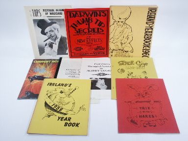 *Darwin, Darwin's Thumb Tip Secrets *Don O'Neal, Trix With Hares *Albert Goshman, Four Cards Through A Newspaper *L. L. Ireland, Ireland's Year Book 1958, 1958 *Richard Ready, Richard Ready's Sponge Ball Perfection Vanish Plus *Vincent Holiday, Space Age Magic *L. L. Ireland, Ireland's Yearbook 1960, 1960 *Current Science Magazine Volume 66 Number 12, 1981 *Abbott Magic, TOPS Pictorial Album of Magicians, 1966. Condition varies, but usually good. | |