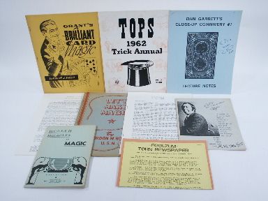 *Richard W. G. Van Ray, Modern Miracles in Magic *Gordon M. Howatt, Let's Make Magic, 1945 *Frank Herman, 12 Methods For Doing the Cut and Restored Nectie (Necktie) *Mak Magic, Foolzum Torn Newspaper *Dan Garrett, Dan Garrett's Close-Up Connivery #1 (inscribed and autographed) *Pete Biro, The Combination of All the Crazy Mixed-Up Lecture Notes from the Electric Writing Machine of Peter A. Biro: Magician (?) Juggler Photographer and Typist! A Book Entitled Son of Greater Magic (autographed and inscribed), 1980 *Robert J. Smith, Grant's Brilliant Card Magic *Abbott Magic, TOPS 1962 Trick Annual, 1962.