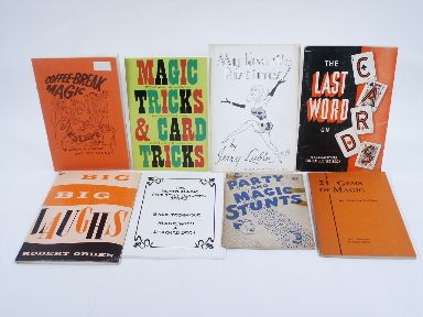 *Jerry Lubin, My Favorite Pastimes, 1970 *Johnnie Murray & Don Tanner, Coffee-Break Magic, 1968 *Anon, Party & Magic Stunts *Robert Orben, Big Big Laughs (1st edition) 1963 *Wilfrid Jonson, Magic Tricks & Card Tricks, 1954 *W. F. Rufus Steele, The Last Word on Cards, 1952 *Repro Magic, Basic Technique With a Stacked Deck *Ormond McGill, 21 Gems of Magic, 1946. Condition varies, but usually good. | |