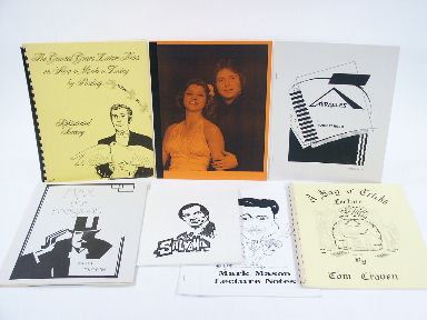 *John Fareed, Miracles. *Tom Craven, A Bag o' Tricks Lecture. *Mark Mason Lecture Notes, inscribed and autographed. *Max the Magician and Diane, Showmanship: The Art That Conceals The Art, 27 pages. *Petrick & Mia, PM Magic. *General Grant, How To Make A Living By Stealing: Sophisticated Sorcery. Condition varies, but usually good. | |